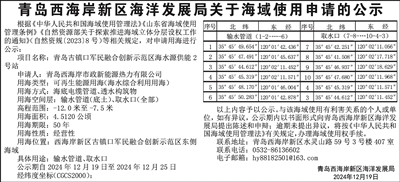青岛西海岸新区海洋发展局关于海域使用申请的公示