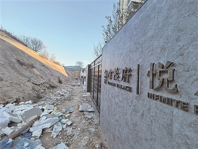 悦府二期位于滁州路以北、劲松五路以西地块,今年9月交付,共有1300多户居民。根据设计图,小区有两个出入口,其中,主出入口位于劲松五路,次出入口位于劲松四路。12月24日,记者在悦府二期看到,由于劲松四路(滁州路-劲松三路)打通工程仍未完工,小区居民目前只能从劲松五路出入口进出,次出入口大门紧锁,门外一座土山挡道。