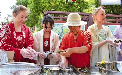 将粽叶折成锥形,填入适量的糯米和馅料,再用粽叶紧紧包裹,用丝线将其缠绕并系紧……6月8日,“端午奇妙游”主题活动在具有千年历史文化底蕴的即墨古城举办。来自俄罗斯、芬兰、埃及、阿富汗的中国海洋大学留学生走进即墨古城,穿汉服、包粽子、学非遗,“花式”过端午。