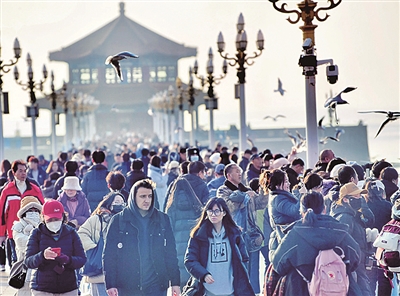 新年假期在大自然中“吐故纳新”,是市民游客不约而同的选择。“青岛这座城市很漂亮很浪漫,‘红瓦绿树、碧海蓝天’名不虚传。”上海游客李女士选择“拼假”错峰出游,1月1日下午抵达青岛后第一站就来到栈桥。远望长虹远引的百年栈桥,看着海鸥成群结伴飞过,一下子就被青岛美景的治愈力吸引,准备购票乘船到海上游览一番。
