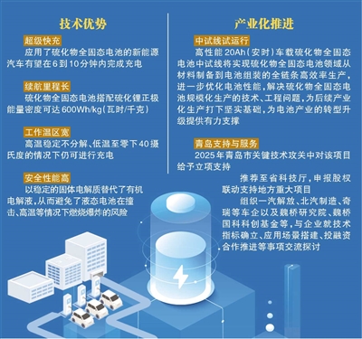 该项目的落地意味着,青岛在硫化物全固态电池这一领域向产业化大步迈进,将进一步为绿色能源、智能网联新能源汽车等新兴产业的发展筑牢技术根基、完善产业链配套,推动科技创新与产业创新融合发展,为青岛塑造创新型产业体系赋能。