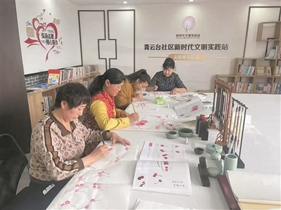 走进北宅街道青云台社区新时代文明实践站,这里开展的文化“两创”与精神文明建设融合发展活动,吸引了众多社区传统文化爱好者的目光。不少国画爱好者变身“老师”,在社区工作人员的帮助下开展国画体验活动。