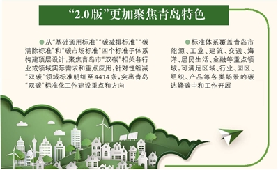 “怎么计算排放的碳有多少、减的碳有多少,这就需要统一的标准,除了基础的碳排放、碳减排标准体系外,《指南(2.0版)》也把啤酒、家用电器、橡胶轮胎等重点行业的标准以及新能源、新型电力系统、化石能源清洁利用等能源减排标准纳入这一框架体系内,让大家有一个统一标准去衡量工作成效。”市市场监管局相关负责人表示,这一指南还紧密围绕青岛市重点发展的海洋碳汇、林业碳汇和碳捕集利用与封存等领域的碳清除技术,推动相关标准制修订和完善,体系的搭建对推动具有青岛市特色的新能源和新型电力系统等多领域深度碳减排技术,林业碳汇、海洋碳汇和碳捕集利用与封存等高质量碳清除措施创新发展,建立健全资源循环交易、碳排放权交易等市场化机制具有重要意义。