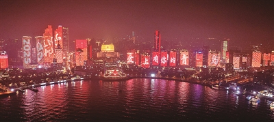 农历小年至元宵节,“喜庆中国年”主题灯光秀每晚上演。刘 栋 摄
