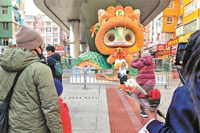 ▲台东商圈“上新”多组以生肖蛇、锦鲤为主题的新春景观。于 滈 摄