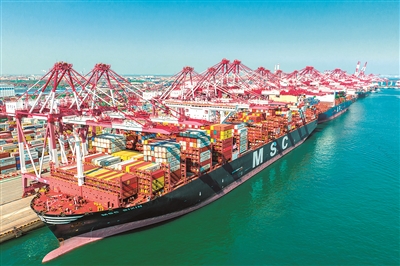 日前,随着首航船舶“中联蛇口”轮靠泊前湾港区,山东港口青岛港正式开通今年首条国际集装箱航线,连接中国到沙特阿拉伯、埃及、土耳其最大港口,进一步畅通远东至地中海的国际贸易通道。