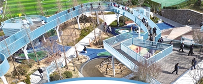 ●青岛许多公园的儿童乐园区创新玩法,“智慧+童趣”的游乐设施吸引儿童尝试多种运动风格。儿童沙坑乐园、攀岩区、儿童钻筒等多种运动游乐设施还会“说话”“唱歌”,让儿童乐在其中