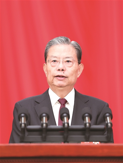 受全国人大常委会委托,赵乐际委员长向大会报告全国人大常委会工作。赵乐际在报告中指出,2024年是中华人民共和国成立75周年,是全国人民代表大会成立70周年。习近平总书记在庆祝全国人民代表大会成立70周年大会上发表重要讲话,深刻阐述人民代表大会制度的光辉历程、显著优势、宝贵经验和实践要求,为坚持好、完善好、运行好人民代表大会制度提供了根本遵循。