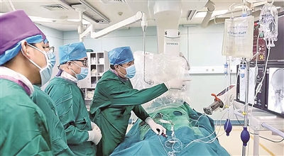 人工智能影像诊断辅助系统对卒中急救的助力,还体现在动脉取栓上。同样基于医生团队对“组织窗”的有效评估,动脉取栓治疗也有望打破传统24小时的“黄金时间窗”。目前,康复大学青岛中心医院正积极开展发病24到72小时内缺血性卒中患者动脉取栓的前瞻性医学研究。对于此类患者,袁海成带领团队积极开展先溶栓后取栓的桥接治疗和先取栓再溶栓的反桥接治疗,两种方案均取得了很好的治疗效果。