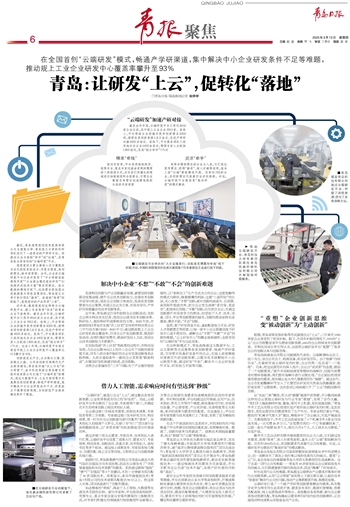 在这种新模式下,青岛选择通过大数据平台、工业互联网等方式集聚各类创新要素、畅通产学研渠道,引导暂不具备研发条件的企业,在线上高效精准对接使用外部创新资源,以数字化手段赋能中小企业转型升级,通过研发“外挂”,解决中小企业研发条件不足、研发能力不强等问题。
