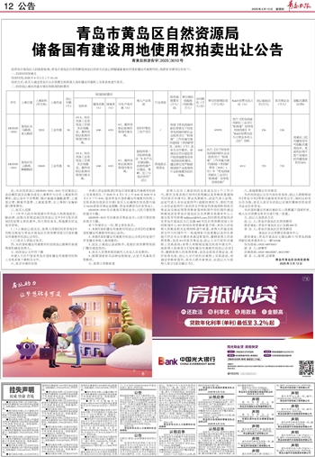 本次拍卖出让公告内容如有变化,出让人将按规定在《青岛日报》等相关媒体发布补充公告,届时以补充公告为准。竞买人竞买本次出让宗地所缴纳的资金须为企业自有资金。