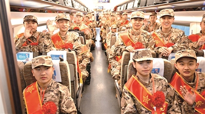 本报3月17日讯 近日,一位位胸佩红花、肩披绶带的新兵身着崭新军装,登上远行的列车,驶向五湖四海的军营,标志着青岛市2025年上半年征兵工作圆满完成。