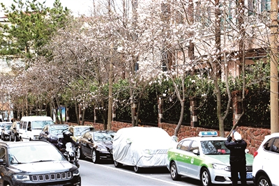 随着气温回升,市南区珠海一路两侧的玉兰花渐次绽放、香气扑鼻,吸引过路市民驻足,用手机定格这份“春日限定”的浪漫。 梁 超 摄影报道