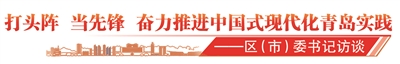区市强,则青岛强。在青岛今年聚力攻坚求实效的各项重点工作中,各区市的新思考、新谋划,关系到青岛推动新质生产力发展的成效,构成了青岛高质量发展的底座。本报今起推出《打头阵 当先锋 奋力推进中国式现代化青岛实践——区(市)委书记访谈》,展现各区市的新路径、新打法。