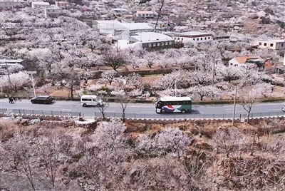 近日,随着崂山北宅街道万亩樱桃花绚烂绽放,2025青岛樱桃花节于漫山芳菲中启幕。本届樱桃花节将持续至4月中旬,“花海穿行”“国风入画”“百业生香”三大主题场景将自然景观、传统文化与市井烟火巧妙融合,推出集观赏性、文化性与体验性于一体的春日盛宴。图为温馨巴士赏花公交穿行在花海中。  刘 栋  摄