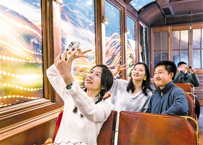 “文化+科技”已成为当前文旅产业的一大亮点。在中山路,“沿着黄河遇见海”4D沉浸式数字项目正通过两者的深度融合,巧妙地激活老城区的“流量密码”。作为青岛市文化和科技融合应用场景示范性项目,“沿着黄河遇见海”是全国首个4D特效与AI算法相结合的数字沉浸式电车项目,2025年新春在中山路向市民游客免费开放。