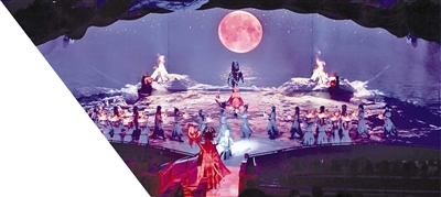 “五千年前,文明的曙光开始点亮古老的中国,一本神秘的古书《山海经》记载,在东海之滨有一条黑色的河流叫墨水。”全息舞台上,随着一位白发老者的讲述,我国首部大型沉浸式航海史诗音乐剧《寻梦沧海》徐徐展开……