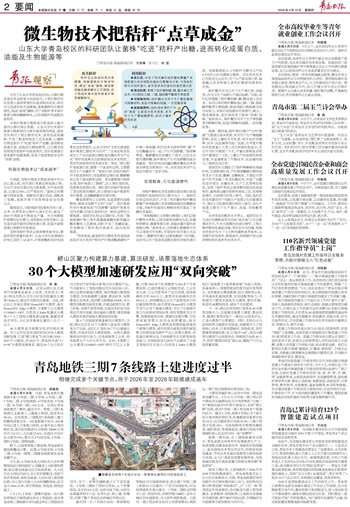 AI大模型是当前数字经济的前沿领域。市工业和信息化局印发的《加快大模型创新发展 打造“模力青岛”行动方案(2025—2027年)》提出,到2027年,青岛将形成“1+8+N”大模型发展体系,建设50个左右具有自主知识产权和较大影响力的大模型产品。作为国家人工智能创新应用先导区核心区,崂山区聚焦垂域大模型、海洋领域大模型细分赛道,加快构建算力基建、算法研发、场景落地生态体系,推动算力规模超2300P,为大模型训练提供强劲支撑,并通过政策引导、算力补贴、场景开放等举措,加速技术研发与场景应用双向突破,推动基础大模型、垂直领域大模型及海洋领域大模型协同发展。