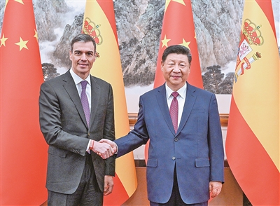 习近平强调,风物长宜放眼量。中西友好是两国人民基于传统友谊、现实需要、长远利益作出的正确抉择。双方要继续巩固相互支持的政治基础,相互信赖、相互尊重,在涉及彼此核心利益和重大关切问题上相互支持,特别是支持彼此维护主权和领土完整。中国14亿多人口的消费升级需求和产业转型潜力,将为世界经济提供强劲动力。中方愿同西班牙用好互利互补的合作优势,发挥好经贸、科技合作机制作用,深挖新能源、高技术制造业、智慧城市等领域合作潜力,打造更多互利合作成果。要赓续相知相亲的友好传统,传承好两国人民深厚的“奥运情”、“熊猫情”,打造“欢乐春节”等新的“金字招牌”,扩大互派留学生规模,让更多青年成为中西友好的生力军。中西都是支持多边主义和开放合作的积极力量,双方要推动构建公正合理的全球治理体系,维护世界和平和安全,促进共同发展繁荣。