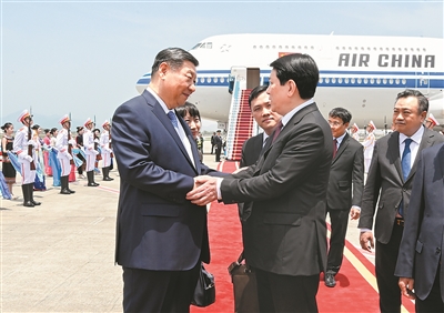 新华社河内4月14日电(记者杨依军 邹学冕)当地时间4月14日中午,中共中央总书记、国家主席习近平乘专机抵达河内,应越南共产党中央委员会总书记苏林、越南社会主义共和国主席梁强邀请,对越南进行国事访问。