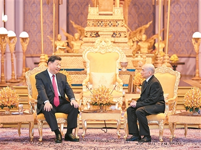 新华社金边4月17日电(记者倪四义 李凯 吴长伟)4月17日下午,柬埔寨国王西哈莫尼同中国国家主席习近平在金边王宫举行会见。