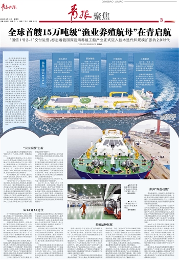 2023年9月8日,“国信1号2-1”养殖工船完成第一块钢板切割,青岛国信集团以“在钢板上绣花”的细节精度,完成400余份详设图纸认可审查,下发8800余份施工图纸,高标准完成建造目标。2024年12月,养殖工船第一次驶离码头出海试航,船舶性能、结构检查、噪声和震动测量等多项性能指标均达到设计要求,集成控制系统良性运转,海试取得圆满成功……