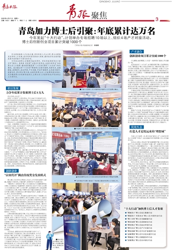 ~~~今年发起“十大行动”,计划举办专场招聘10场以上、组织4场产才对接活动,博士后创新创业项目累计突破1000个