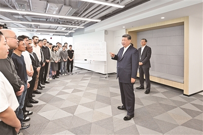 “模速空间”是上海市打造的人工智能大模型专业孵化和加速平台,已入驻企业100余家。习近平来到这里,通过视频短片了解上海市人工智能产业发展情况,察看重点孵化企业的大模型产品展示,听取相关技术研发和企业生产经营介绍。习近平对上海积极发展人工智能取得的实效给予肯定。他指出,人工智能技术加速迭代,正迎来爆发式发展,上海要总结好以大模型产业生态体系孵化人工智能产业等成功经验,加大探索力度,力争在人工智能发展和治理各方面走在前列,产生示范效应。
