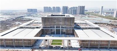 “上合大厦已进入最后的室内外装饰装修阶段,5月份可达到运营条件。我们800多名建设工人奋战在一线,全力保障建设进展。今年7月,这里将与不远处的青岛·上合之珠国际博览中心双馆联动,共同承载2025上合博览会,打造一个国际化、专业化的展示交流平台,为深化上合组织国家间的经贸合作与人文交流构建起全新枢纽。”上合控股胶州湾公司副总经理王秀良介绍。