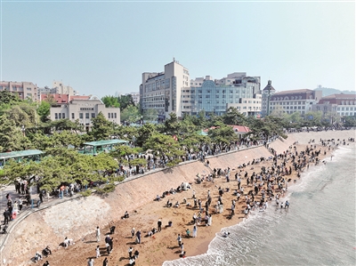 ■市民游客在栈桥景区沙滩上嬉戏。王 雷 摄