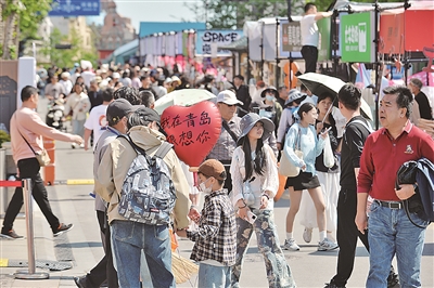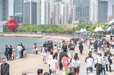 “五一”假期首日,岛城大街小巷游人如织,市民游客来到海边走进老城感受春日胜景体验城市烟火