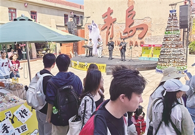 与此同时,街区商户也积极行动起来,集中发力创新场景设计,精心探索年轻化互动方式,力求以深度体验活动吸引人流、汇聚人气。比如,里院美术馆推出“里院花开”——中国艺术名家里院专题暨里院美术馆馆藏作品展,用艺术笔触描绘里院之美,还开展香薰石膏牌手绘制作、纸粘土制作等手作体验活动;青啤在中山路上设置拍照打卡装置,吸引众多游客拍照打卡,丰富市民游客独特的假期体验。