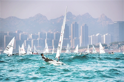 帆船赛事中,ILCA级是目前世界影响最大、普及程度最高的级别。本次2025女子ILCA6级和男子ILCA7级世锦赛是奥运级别的国际A类赛事,也是备战2028年洛杉矶奥运会的重要一战。这不仅是青岛首次举办该级别的世锦赛,也是中国首次举办。图为在小麦岛附近海域举行的男子ILCA7级世界帆船锦标赛现场。