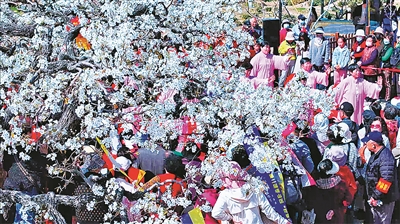 镜头拉进,可以看到青岛赏花图景中的“花样”新意。西海岸新区大珠山景区内,AI互动、文化展演、运动休闲等多元主题活动令人回味无穷;杨家山里赏花季以特色布景、非遗展示、美食品鉴打造沉浸式体验;崂山登瀛梨雪园内,汉服爱好者穿行“梨雪诗画”长廊,美食市集上熙熙攘攘,热闹非凡。