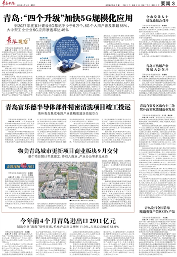 从前4个月外贸进出口主要特点来看,在当前复杂多变的国际经贸环境下,青岛制造企业“出海”韧性突出。机电产品出口911.4亿元,增长11.9%,占出口总值的51.9%,拉动出口增长6个百分点。其中,家用电器、汽车零配件、集装箱、通用机械设备出口分别增长4%、7.5%、21.1%、39.1%。同期,农产品出口154.3亿元,增长3%,占8.8%。此外,钢材出口46.8亿元,增长134.6%,拉动出口增长1.7个百分点。