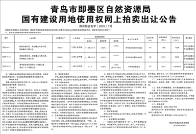 青岛市即墨区自然资源局国有建设用地使用权网上拍卖出让公告