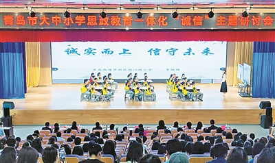 近年来,青岛深入贯彻落实全环境立德树人工作要求,通过打造特色校园文化品牌,构建阶梯式诚信课程体系,创新开展诚信主题实践活动等方式,多措并举推动形成具有青岛特色的诚信教育模式,不断推进大中小学思政教育一体化建设攀上新台阶。
