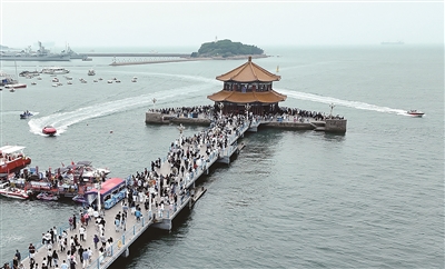 ■端午节假期,栈桥人流如织。 王 雷 摄