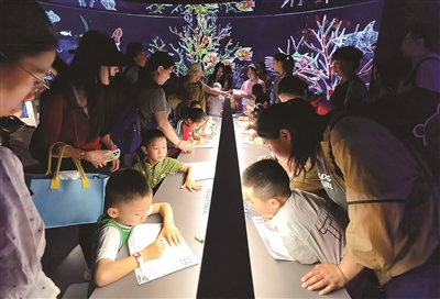 ▶假日里的Art Sea艺术海世界吸引众多家长带着孩子前往体验。 王 雷 摄