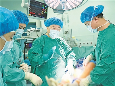 近日,在青大附院骨科手术室里,骨科医院副院长、脊柱外科主任马学晓带领团队仅用40分钟就完成一台治疗腰椎间盘突出症微创手术,患者出血量不到10毫升。这台手术应用的单侧双通道脊柱内镜,是脊柱外科在国家重点研发计划项目资助下,通过产学研医结合,自主研发的领先国际的诊疗设备。目前,该设备已成功实现成果转化,顺利投入临床应用。