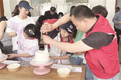 在青岛市中心聋校,志愿者们与孩子们一起参与蛋糕DIY活动,专业烘焙师的现场指导,不仅培养了孩子们的动手能力,也增进了亲子互动,让无声世界充满温暖。