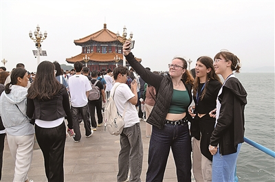 岁月如何抚过城市,迷人的细节激发着旅行者的好奇与遐想。20℃的海风吹来,结伴走入栈桥的“人山人海”,外国游客深情表白:这是令人惊叹的海滨风景。赶忙呼唤友人聚在身边,手机自拍的镜头里便定格下发自内心的灿烂与舒展。热情好客的中国游客主动上前交流,中外少年们一起开怀大笑的情景,流淌着动人的温情。历史城区的Citywalk是少不了的,聆听历史与现代的交响,感受山海与都市的共融,中山路上的特色展陈、海誓山盟广场的市集、大鲍岛的文创店……从“China Travel”到“China Shopping”,旅途中想要收藏每一份美好的心情,从来没有国界。