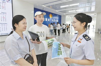 ■连日来,国家税务总局青岛市市北区税务局在办税服务厅设立专项宣传窗口,通过设置咨询台、发放宣传手册等方式,普及环境保护税法,以提升纳税人环保意识,推动绿色低碳发展。
