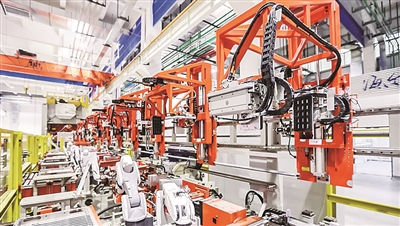 海尔上合冰箱互联工厂里,智能工业机器人与工人有条不紊地协同,生产线每分钟可下线10台高端智能冰箱,日产量达8000台;一路之隔的建筑工地,塔吊林立,机械轰鸣,新厂房的建设如火如荼。