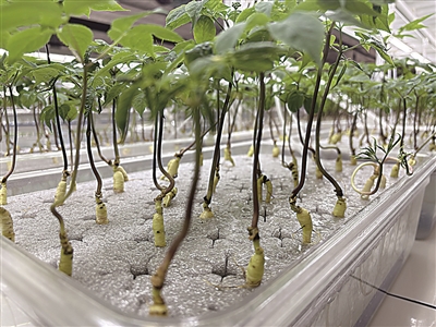 “水耕栽培的人参不是用来吃根的。我们主要采收人参的嫩叶和茎秆,这部分不仅口感鲜嫩,营养价值也很高。”金东辰表示。