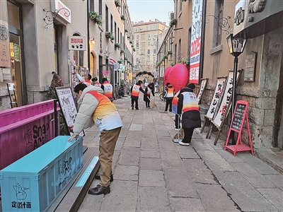 中山路街道黄岛路15号院则是通过“景社融合”实现破题。街道党工委与景区物业服务企业党组织协商,形成房屋维修、秩序管理、环境卫生等7大项23小项的物业基础服务清单,为三江里周边区域居民楼院提供物业服务。