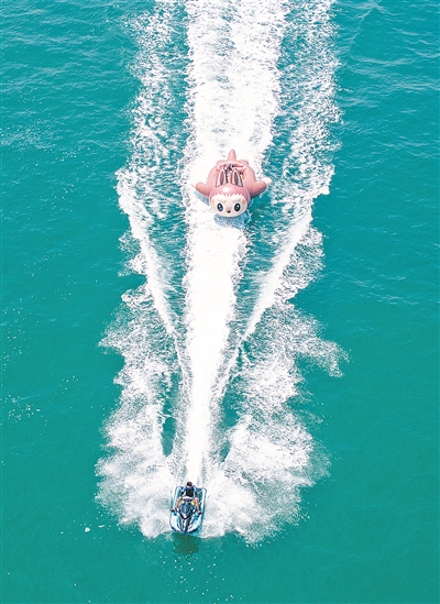■在第六海水浴场,可以乘坐摩托艇体验海上运动乐趣。 梁 超 摄