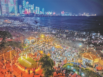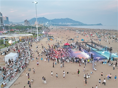 ■第三海水浴场凭借沙滩Bar、灯光秀等丰富业态,人气爆棚。  刘 栋 摄
