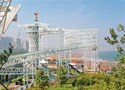 ■金沙滩新上“天空之境”水滑道游乐项目,让游客感受速度与激情。梁 超 摄