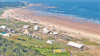 ■银沙滩海水浴场成为露营者的新宠。   梁 超 摄